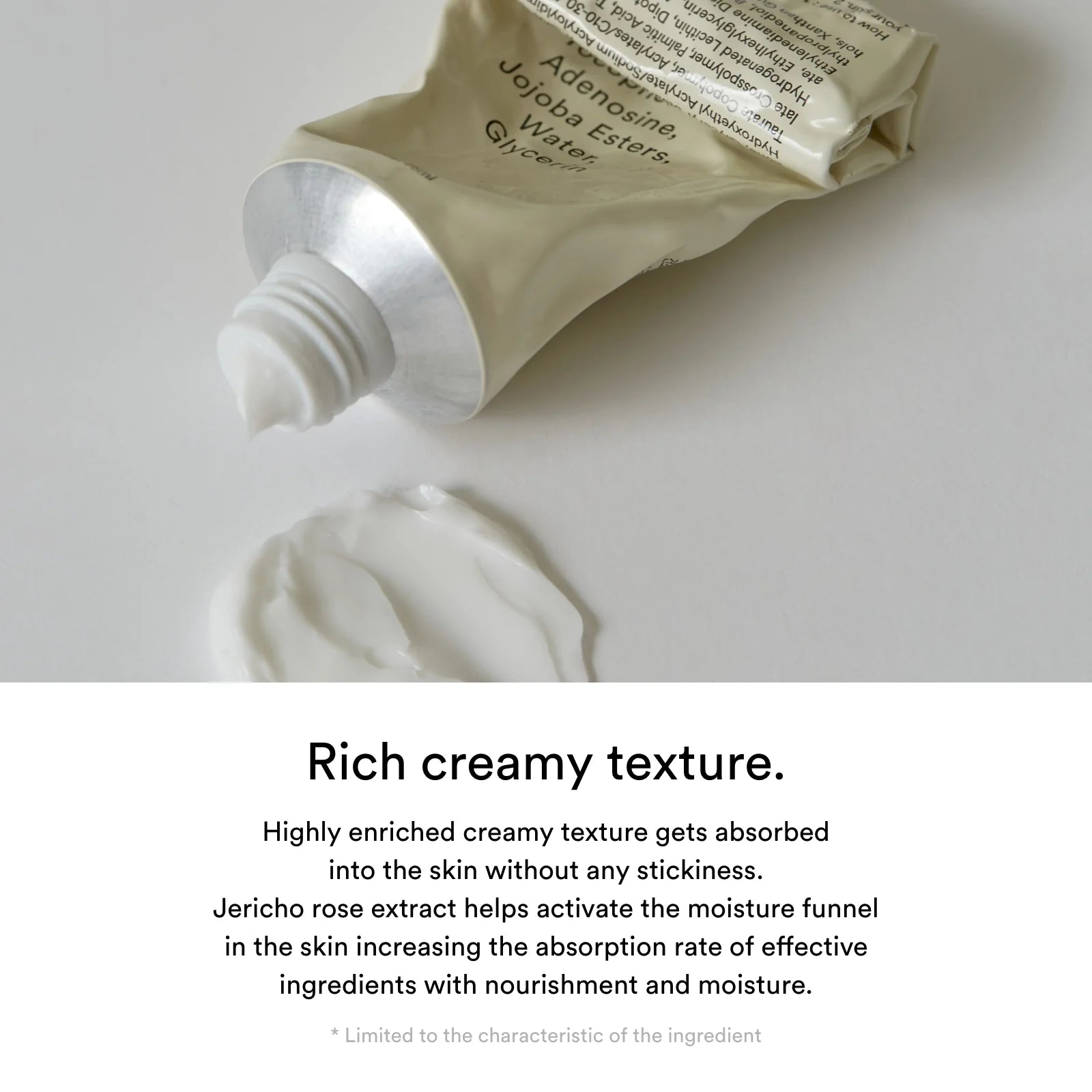 Water, Butylene Glycol, Glycerin, Anastatica Hierochuntica Extract, Caprylic/Capric Triglyceride, Diisostearyl Malate, Cocos Nucifera (Coconut) Oil, Butyrospermum Parkii (Shea) Butter, Cetearyl Alcohol, Diglycerin, Pentylene Glycol, 1, 2-Hexanediol, Bis-Diglyceryl Polyacyladipate-2, Caprylic/Capric/Myristic/Stearic Triglyceride, Isotridecyl Isononanoate, Arachidyl Alcohol, Jojoba Esters, Copernicia Cerifera (Carnauba) Wax, Lactobacillus Ferment, Inonotus Obliquus (Mushroom) Extract, Agave Tequilana Leaf Extract, Panthenol, Synthetic Beeswax, Vinyl Dimethicone, Glyceryl Stearate, Arachidyl Glucoside, Hydroxyethyl Acrylate/Sodium Acryloyldimethyl Taurate Copolymer, Acrylates/C10-30 Alkyl Acrylate Crosspolymer, Palmitic Acid, Tromethamine, Hydrogenated Lecithin, Dipotassium Glycyrrhizate, Ethylhexylglycerin, Adenosine, Trisodium Ethylenediamine Disuccinate, Tocopherol, Methylpropanediol, Behenyl Alcohol, C12-16 Alcohols, Xanthan Gum. Please note that ingredients may change from time to time. You will find an updated list of ingredients on the package.