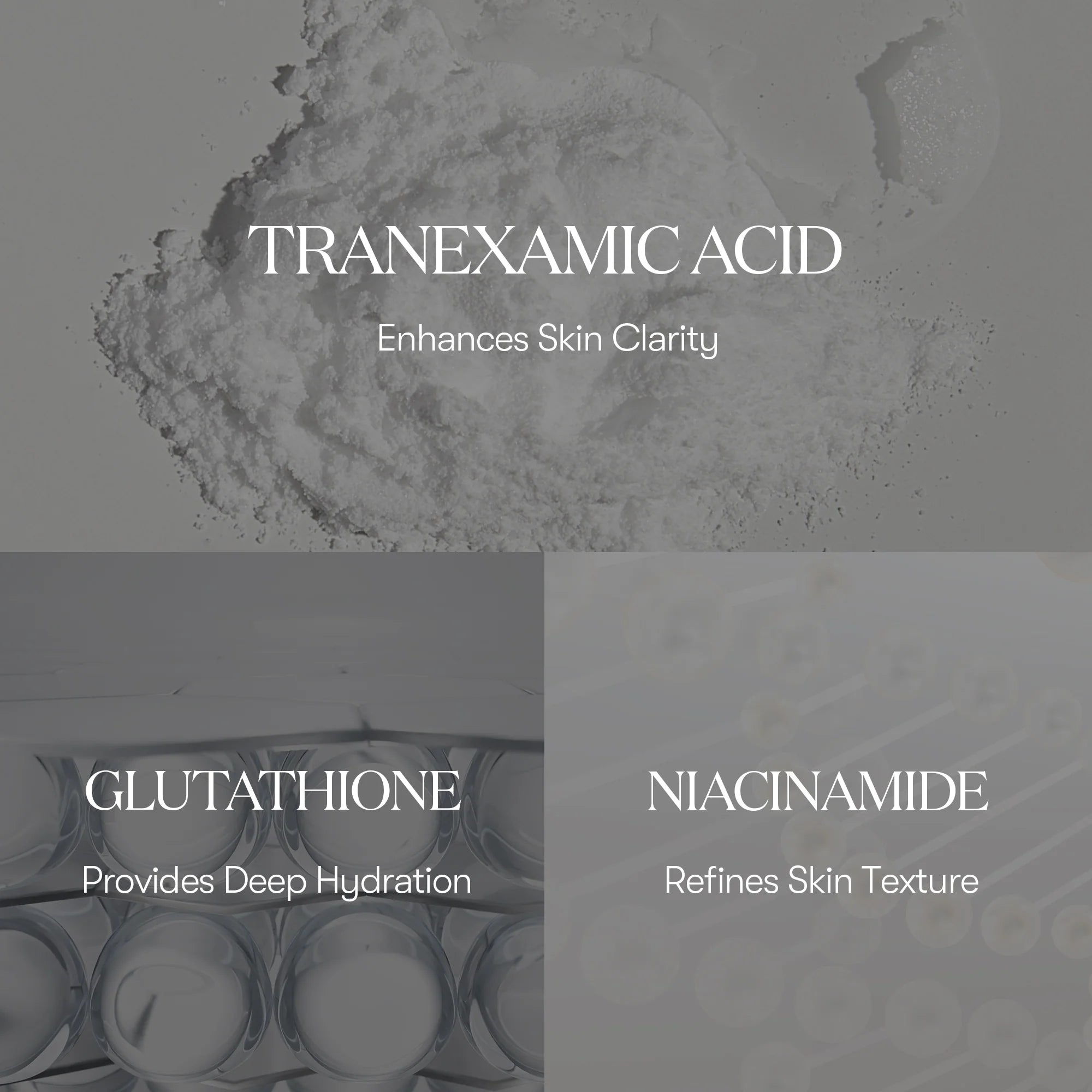 Water, Butylene Glycol, Niacinamide, Glycereth-26, Dipropylene Glycol, Glycerin, Hydroxyethyl Urea, Trehalose, Betaine, Sodium Polyacrylate, Carbomer, Arginine, Allantoin, Adenosine, Xanthan Gum, Disodium EDTA, Glyceryl Acrylate/Acrylic Acid Copolymer, Glycyrrhizic Acid, Ectoin, Tranexamic Acid, Glutathione, Hydrogenated Lecithin, Centella Asiatica Extract, Macadamia Ternifolia Seed Oil, Squalane, Sodium Hyaluronate, Ceramide NP, Hydrolyzed Sodium Hyaluronate, Hydrolyzed Hyaluronic Acid, Hyaluronic Acid, Dimethylsilanol Hyaluronate, Propolis Extract, Stearic Acid, Potassium Hyaluronate, Cholesterol, Sodium Hyaluronate Crosspolymer, Hydroxypropyltrimonium Hyaluronate, Asiaticoside, Sodium Hyaluronate Dimethylsilanol, Sodium Acetylated Hyaluronate, Madecassoside, Madecassic Acid, Asiatic Acid, Folic Acid, Cyanocobalamin, Thiamine HCl, Riboflavin, Pyridoxine, Pantothenic Acid, Niacin, Niacin, 1,2-Hexanediol, Hydroxyacetophenone