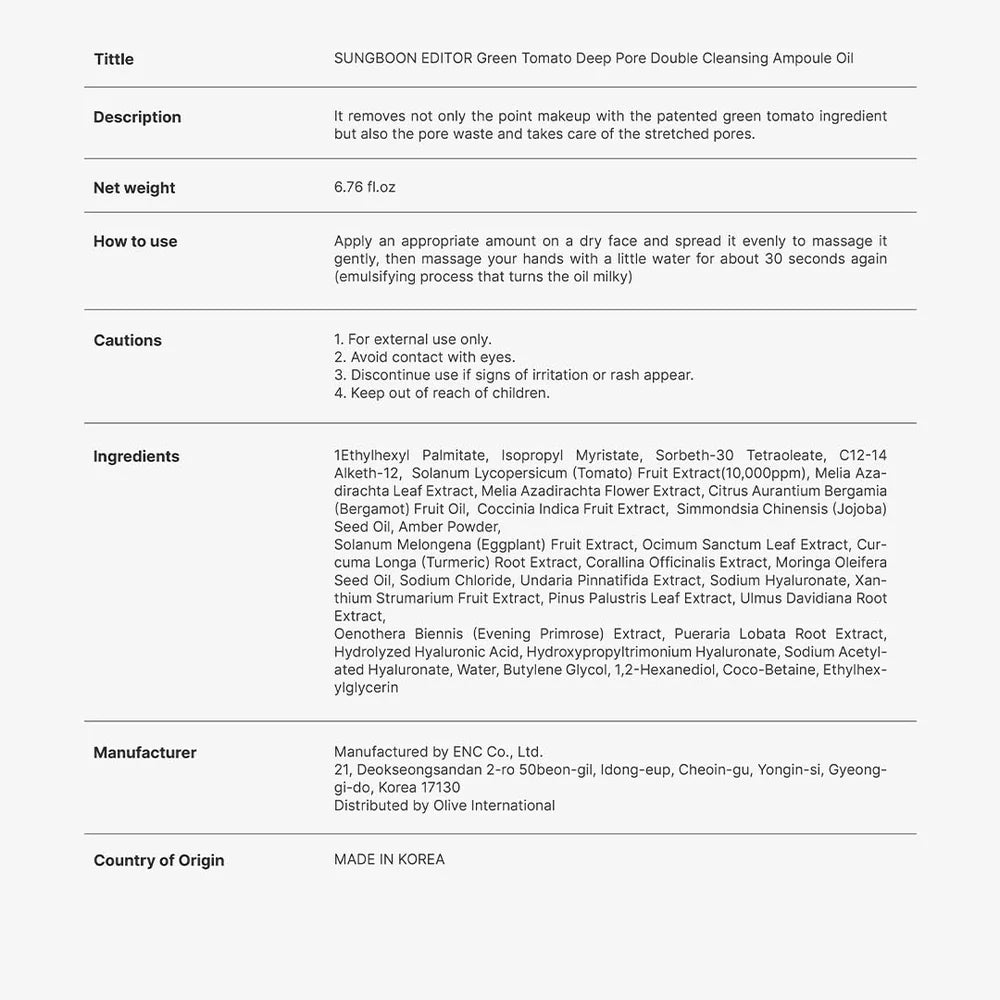 - Grønn tomatekstrakt: Rik på antioksidanter og naturlige syrer som bidrar til å rense porene, redusere talg og fremme en klar hudtone.