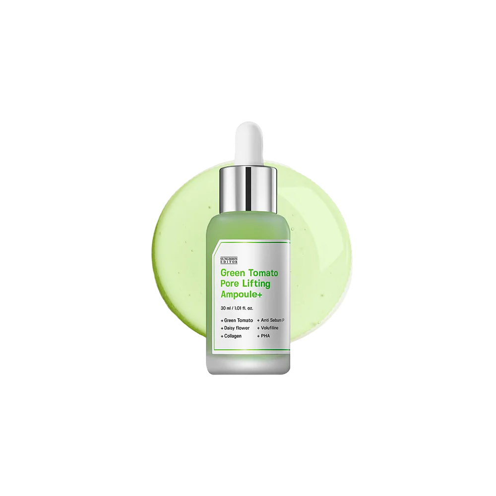 Stram opp og balanser huden med Sungboon Editor Green Tomato Pore Lifting Ampoule+ – et konsentrert serum utviklet for å redusere synlige porer, forbedre hudens fasthet og gi en klar, frisk glød.