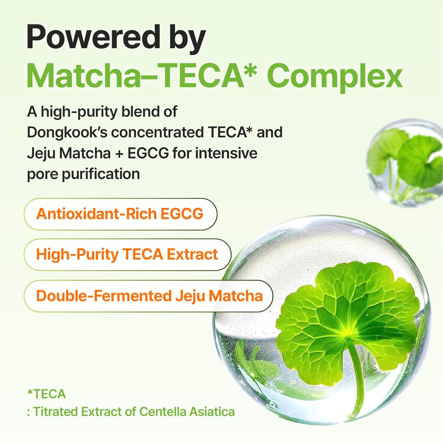 - Matcha-ekstrakt: Antioksidantrik ingrediens som bidrar til å rense porer og balansere talgproduksjon.