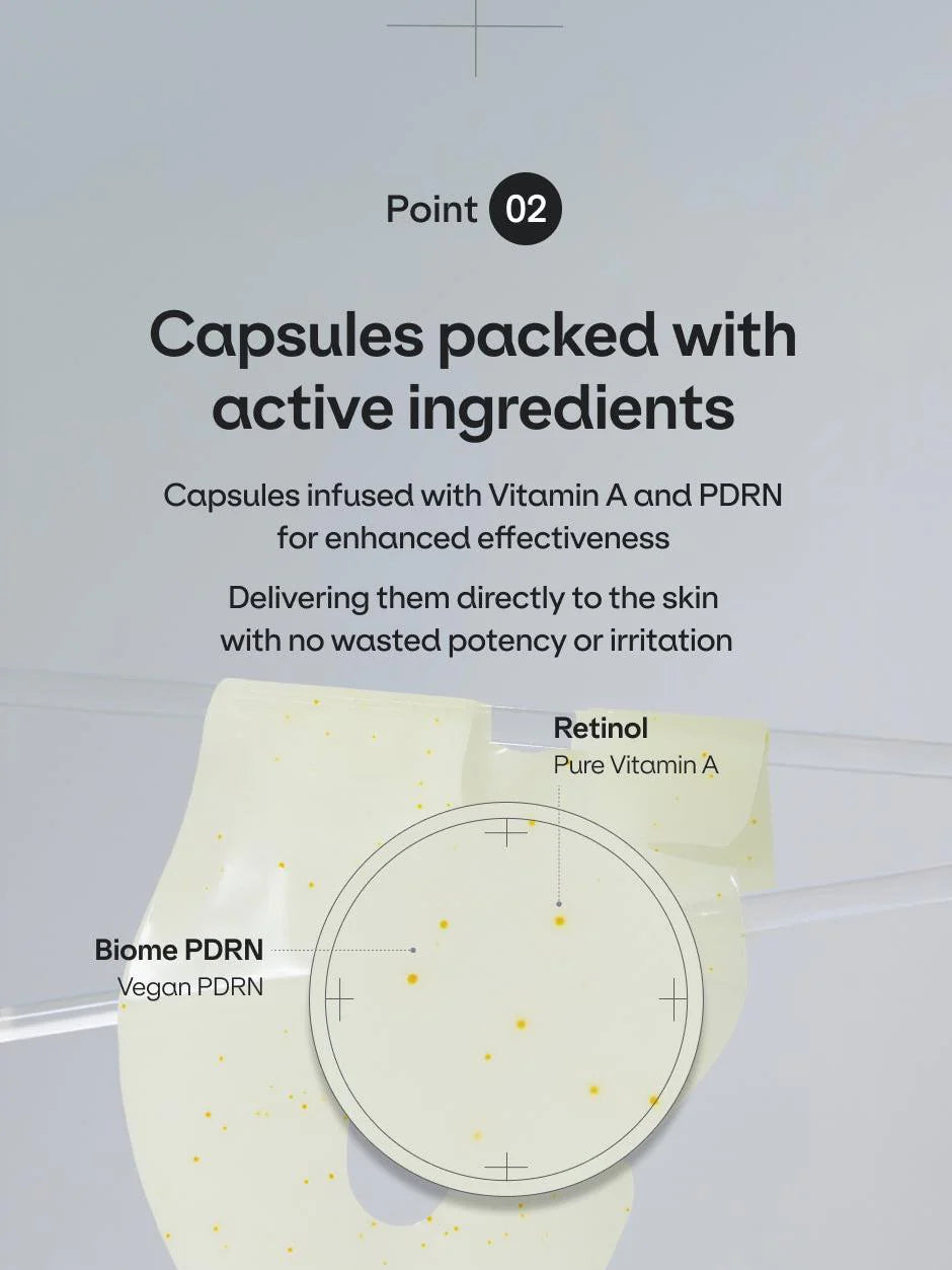 Formulert med PDRN og retinol for å vitalisere sliten hud samtidig som den øker hudens elastisitet for å redusere synligheten av rynker og fine linjer.